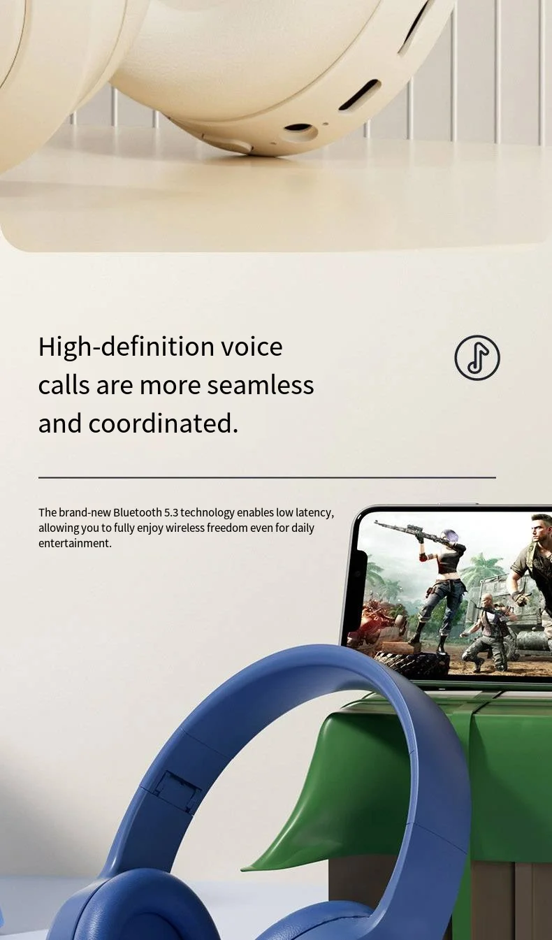 M5 Wireless Headphones, Bluetooth 5.3 Hifi Stereo Headphones, Noise-Cancelling Gaming Headphones, Foldable Headphones with Micro