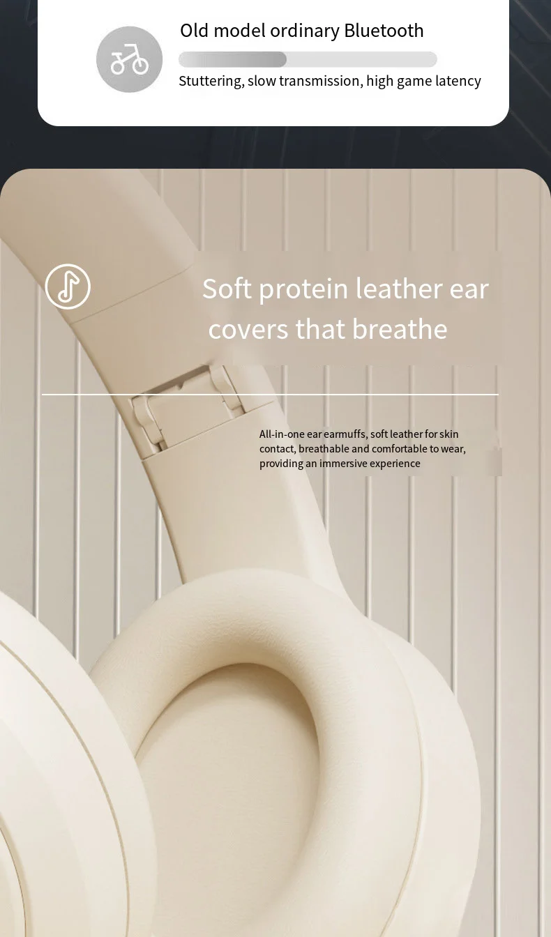 5. The lightweight design features a soft protein leather wrapped around the inner side of the headrest, paired with skin-friendly and breathable ear cups, providing a comfortable listening experience throughout the day.